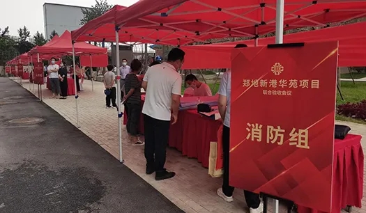 鄭地新港華苑項目于2021年8月26日下午,順利完成由鄭州市城建局牽頭組織,人防、消防、質監、規劃等部門共同參與的聯合驗收,是疫情期間第一個通過聯合驗收的建設項目。為嚴格落實鄭州市新冠肺炎疫情的防控要求,新港華苑項目部提前制定了周密的疫情防控方案,采取了妥善的疫情防控措施,有序組織進入院區人員掃健康碼、檢查48小時核酸檢測結果、測量體溫、酒精消殺、分發防疫包等。經過啟動儀式、書面匯報、現場巡查、聯動測試等環節,鄭地新港華苑項目順利完成聯合驗收工作。